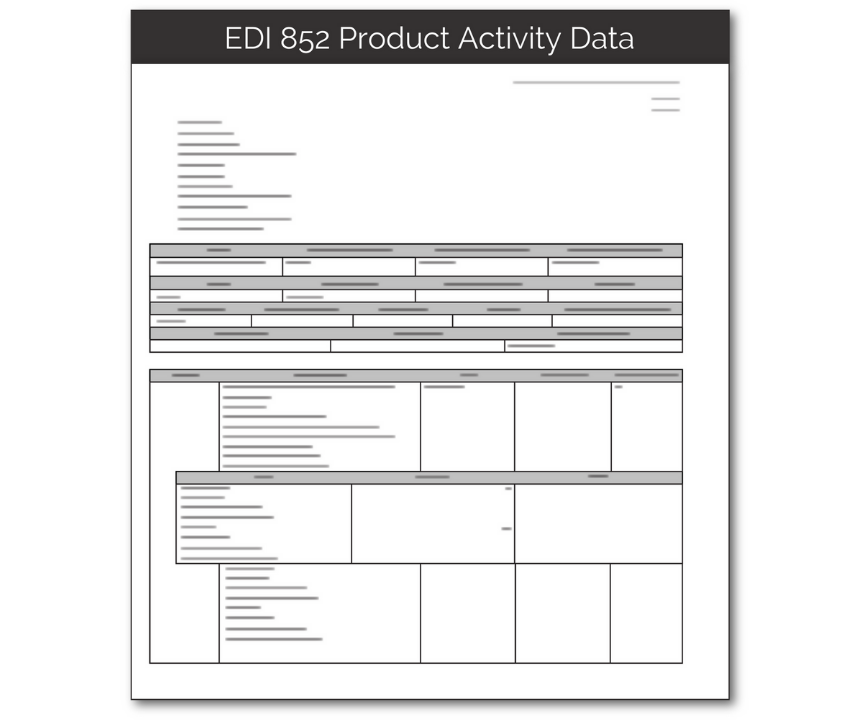 EDI 852 is also known as a Product Activity Data report. This EDI transaction set is used primarily to share data related to inventory positions and movements (such as sales and restocking), between suppliers and retailers. EDI 852 plays a major role in enhancing supply chain visibility and is especially helpful for those using Vendor Managed Inventory and Scan-Based Trading approaches.