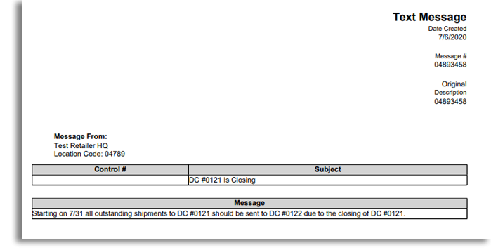 MSG*Starting on 7/31 all outstanding shipments to DC #0121 should be sent to DC