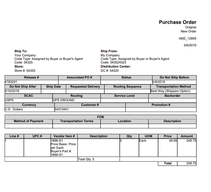 - Purchase Order (EDI 850) / EDIFACT ORDERS: The buyer places an order electronically