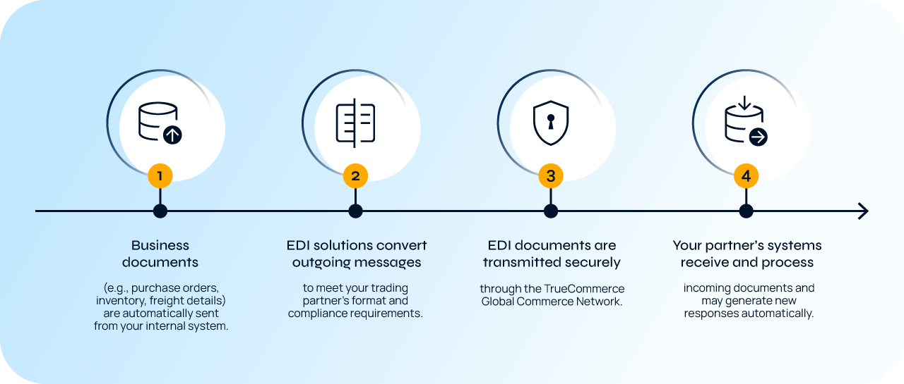 The TrueCommerce EDI managed service has been designed to meet the EDI requirements of small, emerging, mid-market and enterprise businesses, with an EDI solution that provides all of the key EDI elements required for a complete end-to-end EDI solution.