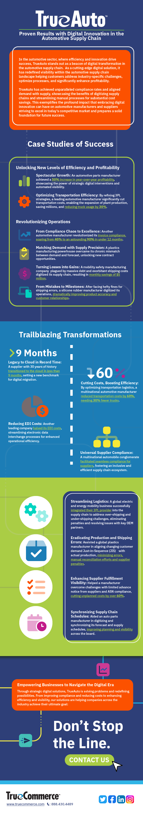 This infographic showcases the many achievements of automotive businesses that have deployed TrueAuto solutions, including: